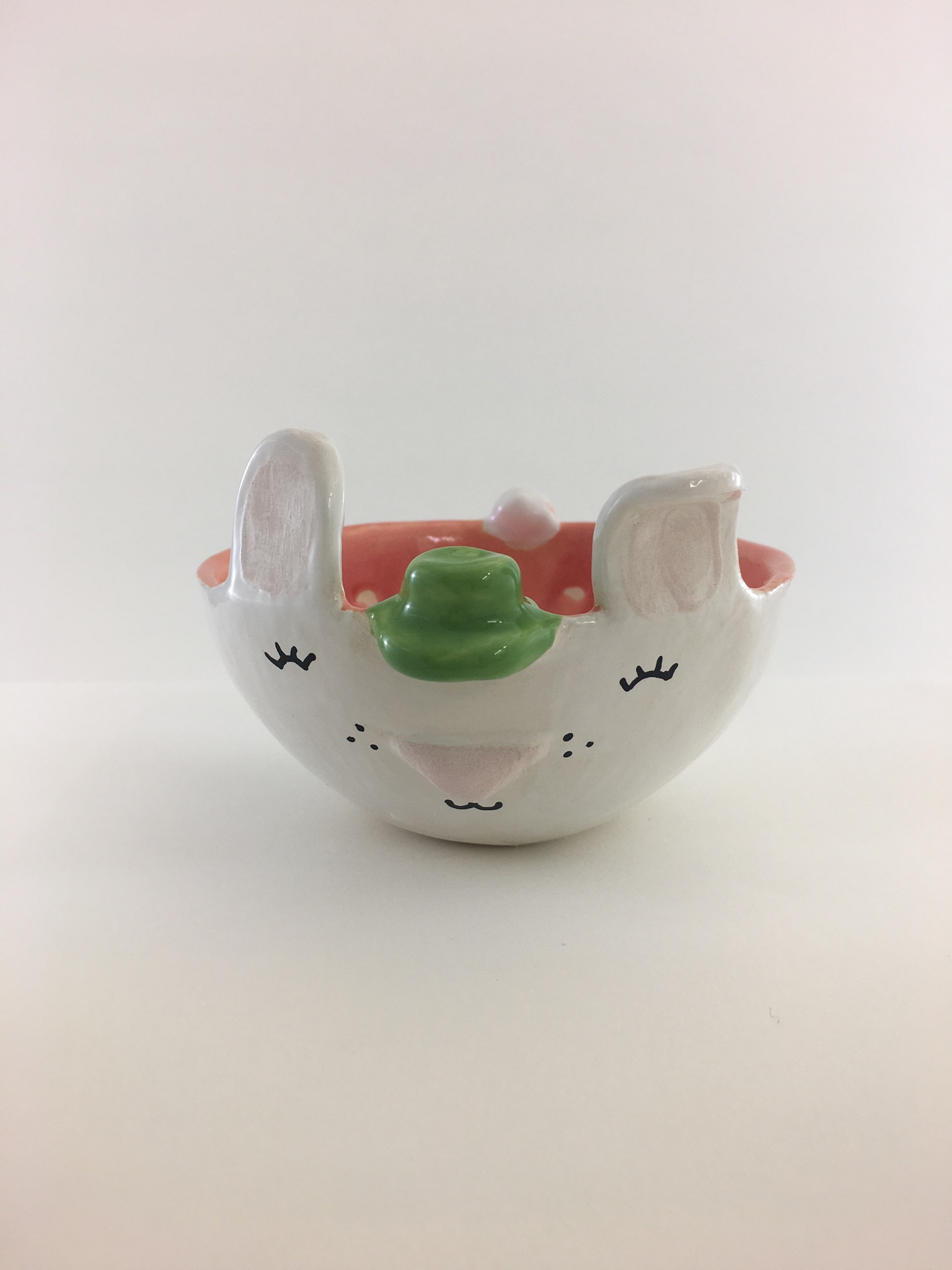 Ca. 8×6 cm, „Bunie“, Handmodellierte Schale aus gebranntem Ton. Bemalt & Glasiert, (SOLD)