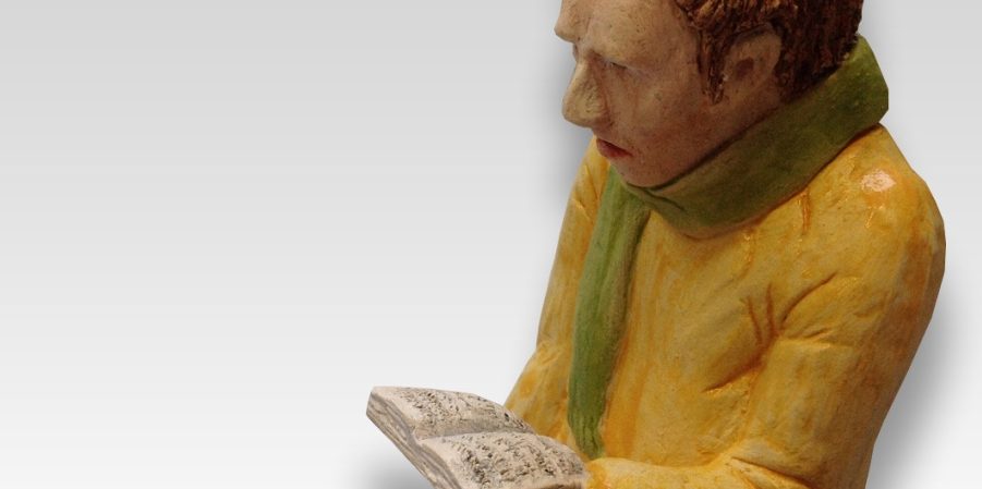 „Er liest“ 2014 – Keramik, Sinterengobe, B13xH30xT13cm (SOLD)
