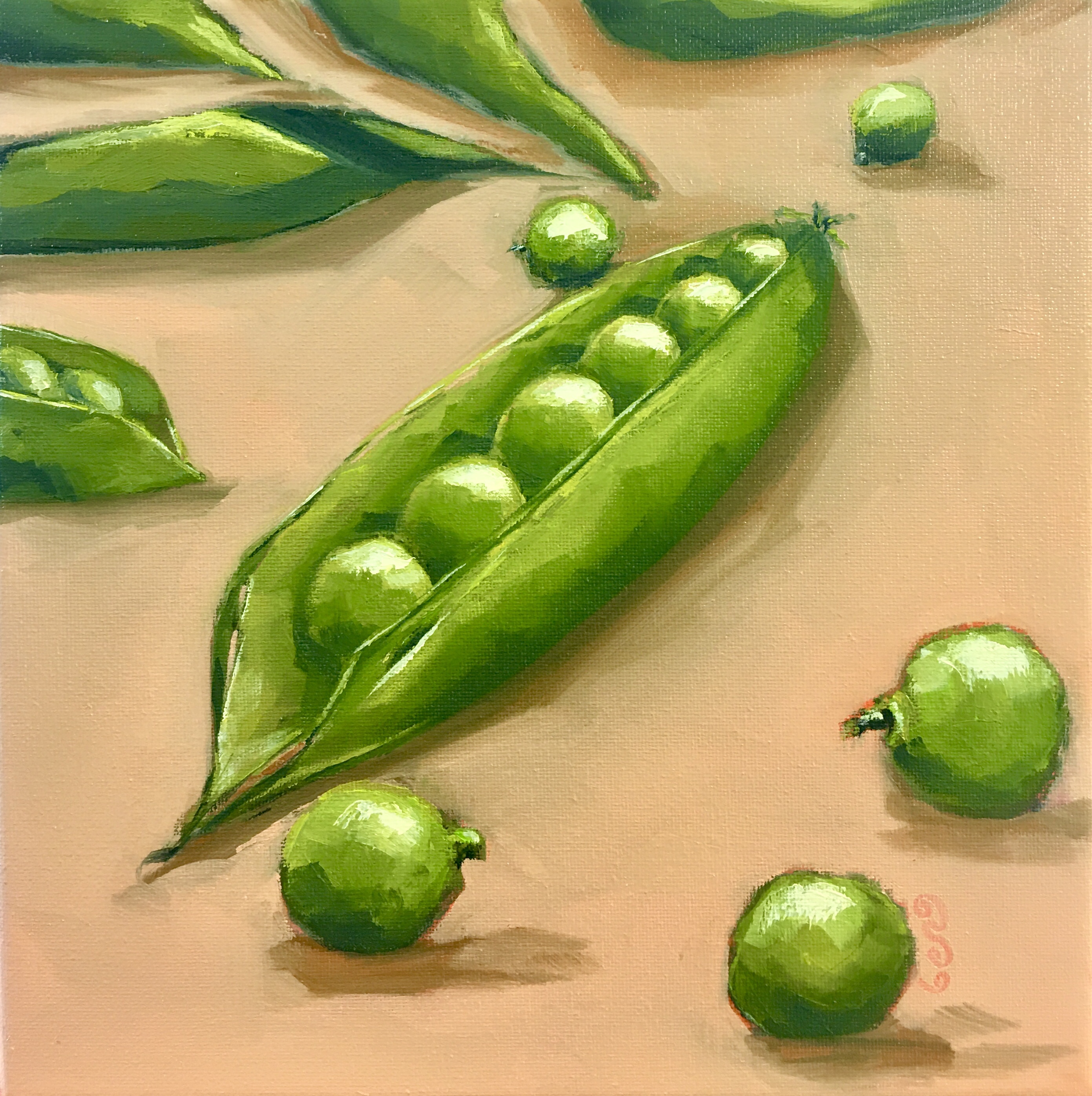 25×25 cm, Öl auf Leinwand, „Erbsen“, 2021